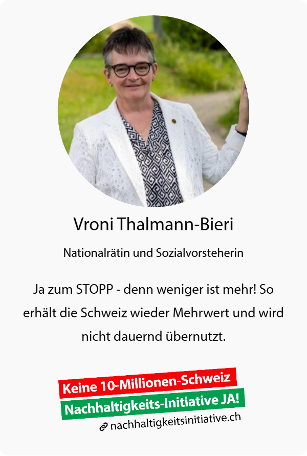 Deshalb JETZT ein JA zur KEINE 10 MIO Schweiz!! Das ist Nachhaltig für unsere Schweiz.