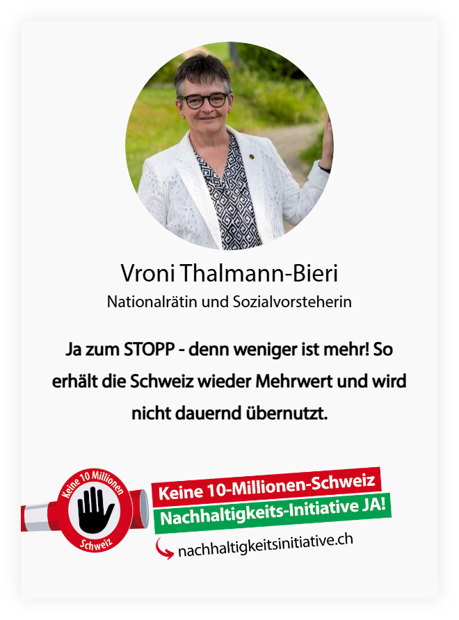 Darum JETZT ein JA zur "KEINE 10 MIO Schweiz!!" Das ist Nachhaltig für unsere Schweiz.